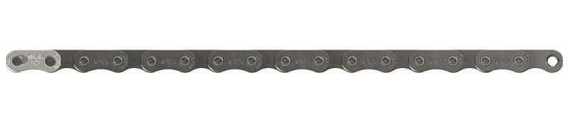 SRAM APEXLa technologie Flattop, c'est bien plus qu'un look très particulier. Grâce à elle, nos chaînes 12 vitesses sont plus légères, plus robustes et durent plus longtemps que tout ce qui a été conçu auparavant. La chaîne Apex reprend la même conception que les chaînes Rival et Force, avec une finition polie de couleur grise.