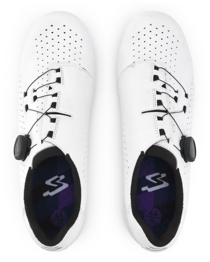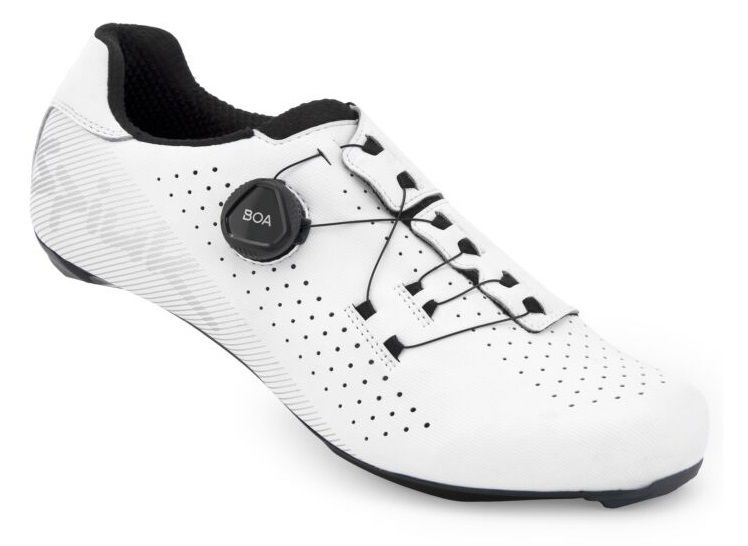 -Chaussure de cyclisme sur route avec Boa® Fit Sytem-Semelle en fibre de verre et nylon pour un pédalage efficace, adaptée aux cales de route et de type SPD-Molette Boa® Fit System avec réglage micrométrique-La configuration exclusive du câblage évite les points de pression et assure une prise ferme-Son empeigne enveloppante sans languette permet une plus grande flexibilité de la cheville
