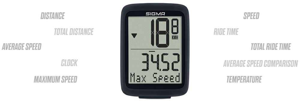 Les fonctions du compteur cycle sont clairement affichées sur son grand écran de 31 x 39 mm. Les grands chiffres sont parfaitement lisibles, même en plein effort. La forme du SIGMA ORIGINAL est épuré et sobre – et s’adapte ainsi à tout type de vélo.