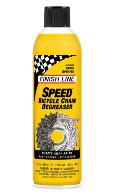 LE DÉGRAISSANT À SEC RAPIDE ET EFFICACE, SANS RINCAGE À L'EAU ! Le dégraissant FINISH LINE SPEED BIKE™ utilise une technologie de dégraissage à sec. En tant que tel, il ne laisse aucun résidu et le rinçage à l'eau n'est pas nécessaire. Finish Line a récemment ajouté un turbo pulvérisateur à son aérosol SPEED BIKE™ qui utilise une agitation mécanique pour aider à éliminer rapidement les contaminants de la transmission.Le dégraissant SPEED BIKE™ est formulé avec des solvants spécialisés qui décomposent la graisse, la saleté et d'autres solvants dont la spécialité est d'éliminer les résidus organiques comme la poussière et la terre.Comme son nom l'indique, le SPEED BIKE™ est le moyen le plus rapide de nettoyer une transmission. Pour la plupart des applications, les brosses et outils spécialisés ne sont pas nécessaires. Comme le dégraissant SPEED BIKE™ ne laisse aucun résidu et sèche rapidement, le lubrifiant peut être immédiatement appliqué !