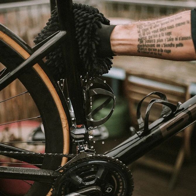 Donnez à votre vélo un lavage complet sans vous salir les mains avec ce gant de nettoyage pour vélo.