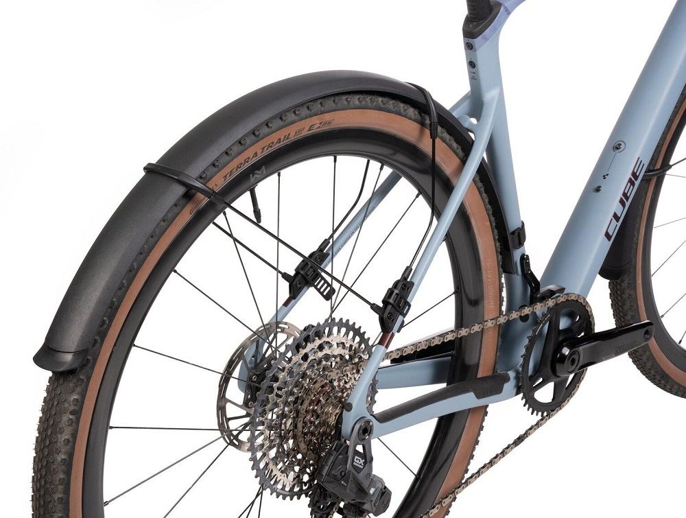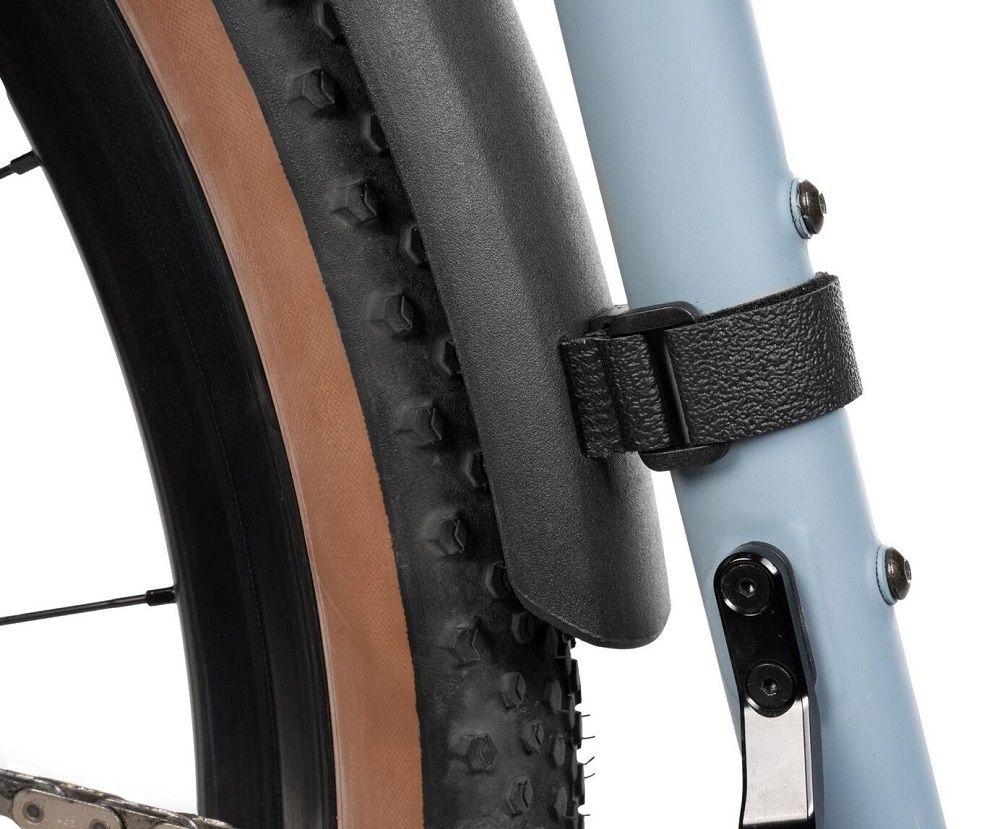 Le jeu de garde-boue ACID Clip-On GRAVEL 28" est spécialement conçu pour les vélos de gravel avec des roues de 28 pouces. Il offre une protection fiable contre la saleté et l'eau pour les pneus d'une largeur allant jusqu'à 2 pouces. L'installation se fait sans outil, à l'aide de sangles en caoutchouc flexibles qui fixent les garde-boue aux haubans, à la tige de selle et à la fourche. Après la mise en place initiale, les garde-boue peuvent être rapidement montés et démontés selon les besoins. Le garde-boue arrière en deux parties est doté d'une protection contre les éclaboussures amovible et caoutchoutée et d'icônes brillantes. Les matériaux durables garantissent une grande stabilité et une longue durée de vie, même en cas d'utilisation intensive sur des routes non pavées.