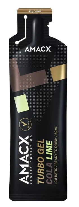 Le Gel Turbo Cola Lime d’Amacx est un gel sportif prêt à l'emploi auquel de l'eau a déjà été ajoutée. Ce gel contient plusieurs sources d'hydrates de carbone à libération progressive (rapport hydrates de carbone 1:0,8). Disponible dans les saveurs Citrus, Cola Lime et Cassis Caféine.