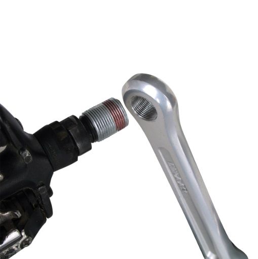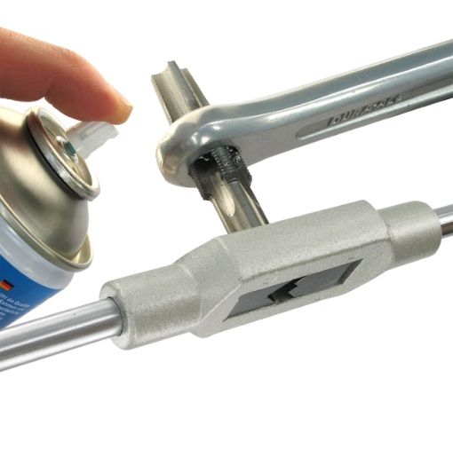 Utilisation :Eliminer et faire un nouveau taraudage à une cote supérieure (5/8’’x24 tpi) dans la manivelle grâce aux tarauds.Veillez à utiliser le bon pas du tarauds pour la bonne manivelle (l'inscription "L" indique un pas à gauche)A utiliser impérativement avec l'huile de coupe CD-77000.Les tarauds s’adaptent sur le tourne à gauche DV-04340Enduire l’extérieur de la bague réductrice de frein-filet NL-77400 puis la visser dans le taraudage.Enfin, replacer l’axe de pédale dans la bague taraudée