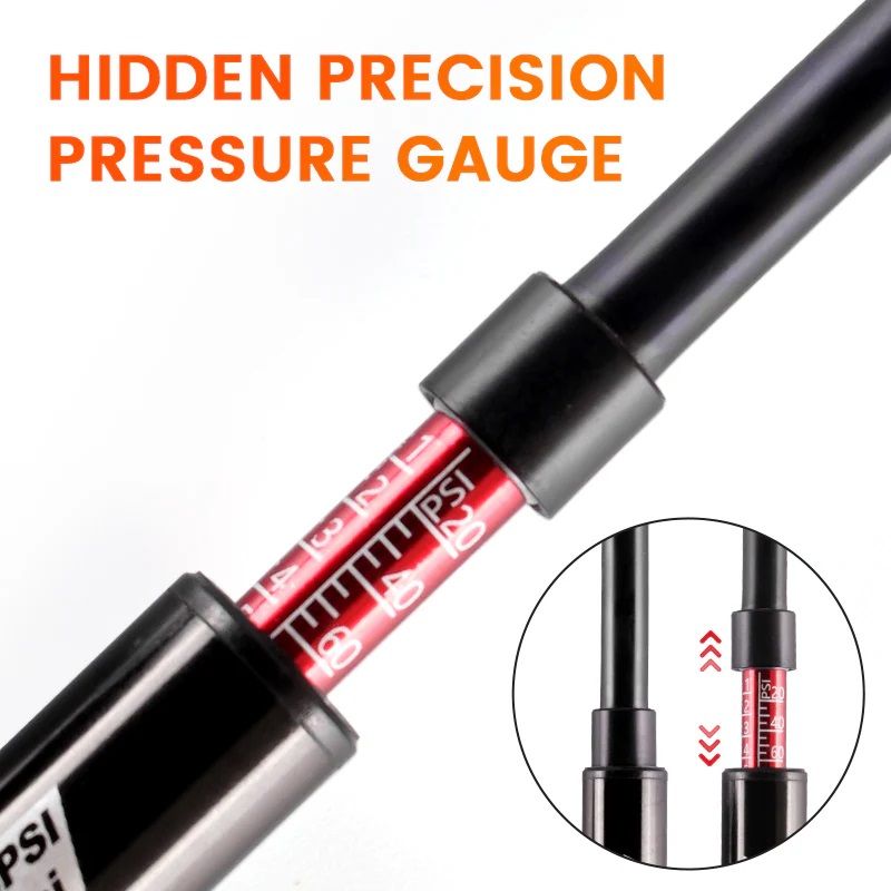 2. Manomètre de précision caché : le manomètre discret intégré vous permet de surveiller la pression des pneus avec précision pour des performances et une sécurité optimales.