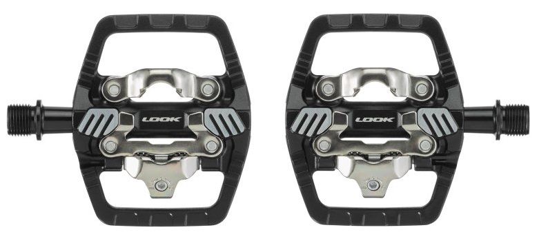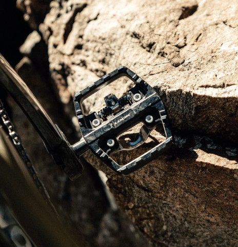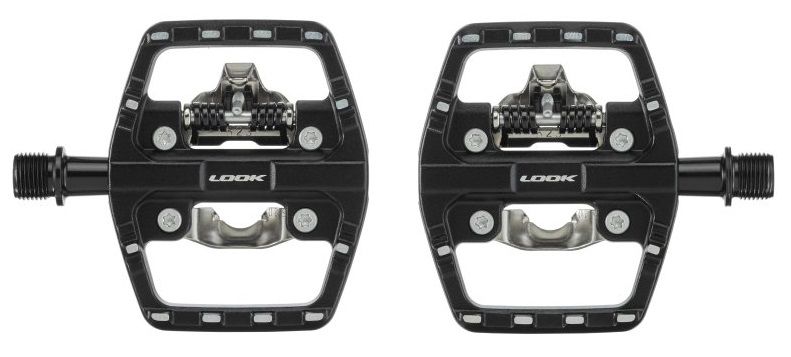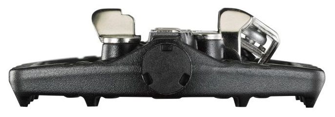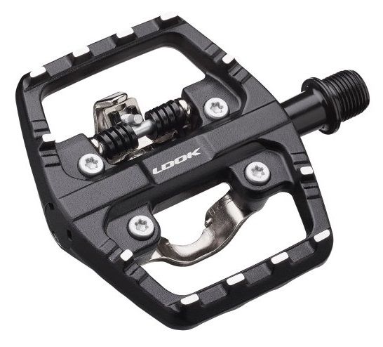 Technologie: Hybrid pedals = Half flat + Half clipless