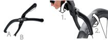 pince spéciale pour l'installation de pneus sur jantele matériau plastique dur n'endommage pas le pneu ou la jantemanipulation facile et rapide, prise fermelongueur : 230 mm, largeur : 45-60 mm, poids : 120 gmatériau : composite de nylon