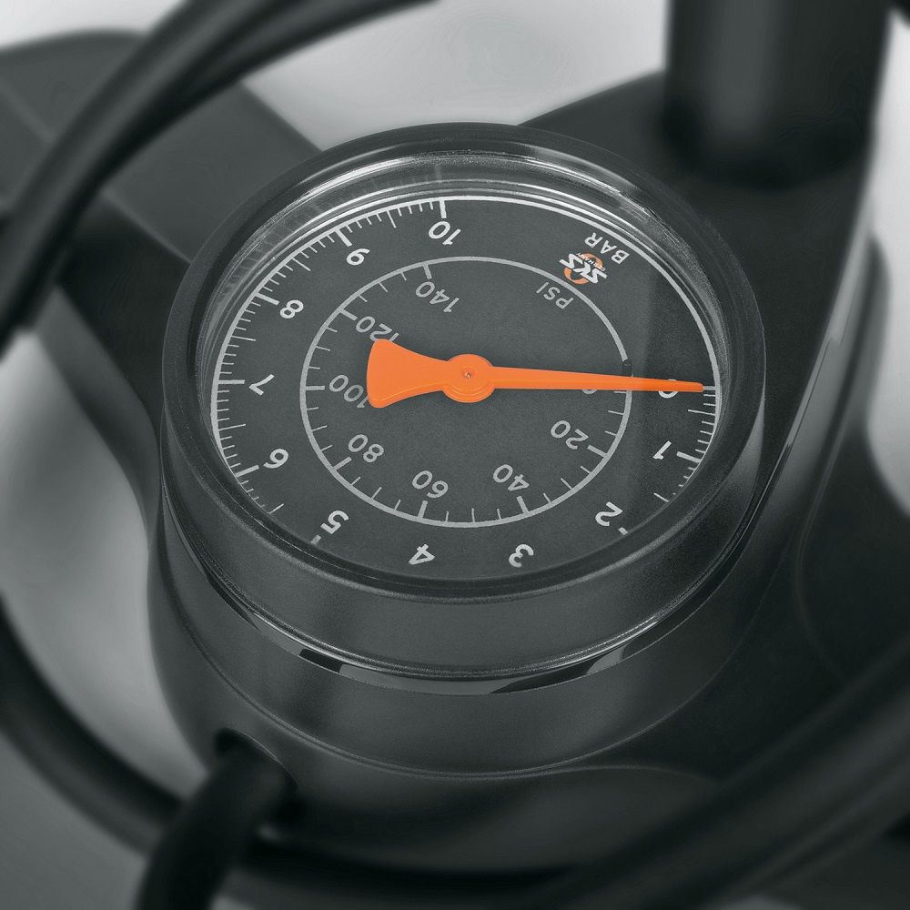 Pompe à pied compacte avec raccord de valve MV EASYLa pompe à pied AIRLITE de SKS combine des matériaux de haute qualité et une fonctionnalité ingénieuse. Le grand manomètre de précision permet une lisibilité optimale de la pression des pneus jusqu’à 10 bars. Avec son tube d'acier et le pied robuste en plastique, la pompe à pied garantit une grande stabilité lors du pompage. La poignée de forme ergonomique garantit un maintien sûr et simplifie la manipulation.