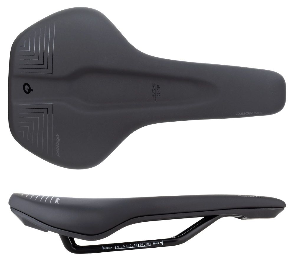 Le Raion est une selle en forme de T à forme ergonomique plate qui complète la famille Akero R et est proposée en deux largeurs différentes : 135 mm et 145 mm. La version étroite, plus petite et plus effilée, est recommandée pour ceux qui souhaitent une plus grande liberté de mouvement ou qui ont un os pelvien étroit au niveau ischial. La version large de 145 mm, plus rembourrée, est parfaite pour ceux qui recherchent plus de soutien, plus de confort et une meilleure répartition du poids.