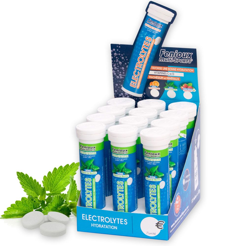 Fenioux multi-SPORTS vous propose de compenser ces pertes de minéraux par la prise des Comprimés ELECTROLYTES pour boisson.