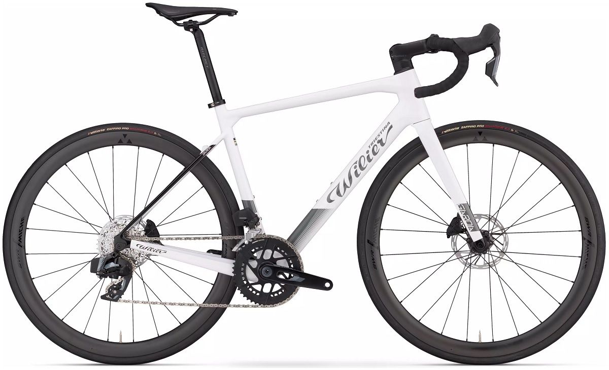 ÉquipementsE406527 SHIMANO 105 12SFrame: GARDA DISC - CARBON MONOCOQUE NH-MODFork: GARDA DISC - CARBON MONOCOQUEH-Bar: BARRA SStem: STEMMA SHeadset: WILIER CUSTOM BEARINGS SUPERSLIMShifters: SHIMANO 105 12S ST-R7120Brakes: SHIMANO 105 BRAKE BR-R7120Rotors: SHIMANO 105 CENTER LOCK SM-RT70 160 MM / 140 MMFront derailleur: SHIMANO 105 FD-R7100 12SRear derailleur: SHIMANO 105 RD-R7100 12SCrankset: SHIMANO 105 FC-R7100 50-34TBottom bracket: SHIMANO PRESSFIT BB-RS500-PBCassette: SHIMANO 105 12S CS-R7100 11-34TChain: SHIMANO CN-M7100 12STyres: VITTORIA ZAFFIRO PRO 4 700X28Saddle: SELLE ITALIA MODEL XSeatpost: RITCHEY 2-BOLT ALLOY BBKAxle: THRU AXLE 12X125 FRONT - 12X171 REARFrame weight: 1150 g +/- 5%Fork weight: 370 g +/- 5%