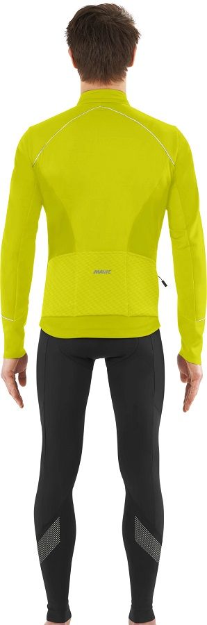 Parmi les finitions, une doublure en polaire sur le col, une structure spécifique des manches pour épouser le poignet, une bande élastique en silicone autour de la poitrine pour garder le vent et le froid à l’extérieur, et des éléments réfléchissants pour améliorer la visibilité par conditions de faible éclairage.